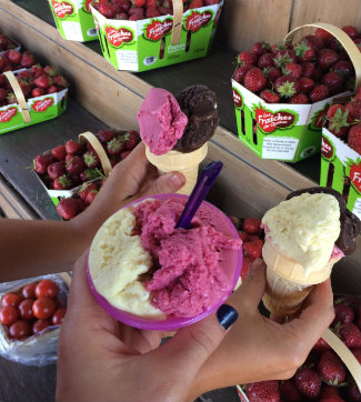 Gelatos : Également un mot de l’italien, celui-ci signifie « glace » ou « crème glacée ». Bien entendu on comprend qu’ici c’est fait avec du lait, de la crème, du sucre et des fruits frais. Étant donné la présence de produits laitiers, ça lui confère une consistance onctueuse en plus d’un bon goût de fruit naturel. Ça vaut la peine d’être essayé! Il nous fera plaisir de vous offrir cette petite gâterie.