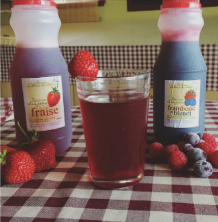 Un petit mot sur nos succulents jus… À partir d’un pressoir, on extrait le jus du fruit auquel on ajoute des tisanes et du sirop d’érable. Pourquoi le sirop? Parce que ce sont des petits fruits très périssables, cela a donc pour but de prolonger leur conservation sans avoir à y ajouter des agents de conservations. C’est aussi pour cette raison que nous le vendons congelé. Cette boisson très bonne pour la santé se boit très bien nature ou vous pouvez aussi l’agrémenter avec un mousseux ou un vin blanc. Vous aurez alors un petit apéro hors du commun.